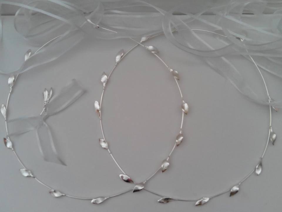 Silver plated STEFANA with matching groom's boutonniere, wedding wreaths, headpieces, headbands, set of two with one matching boutonniere