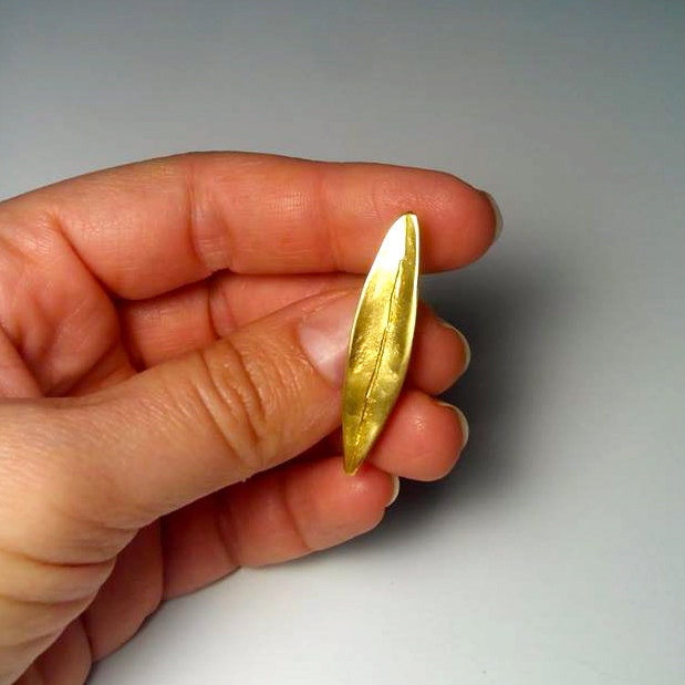A beautiful handmade metal leaf Grooms' boutonniere and Groomsmen corsage in raw brass.