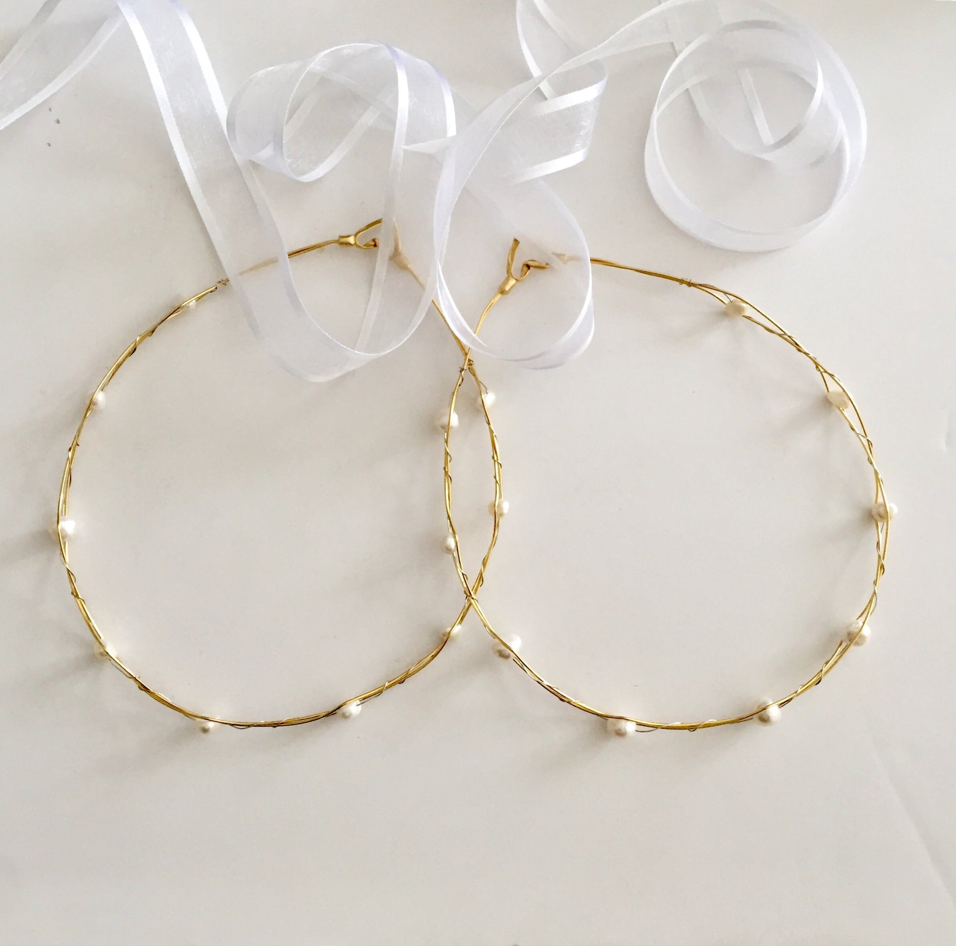 An elegant set of wedding crowns with fresh water pearls. Set of two