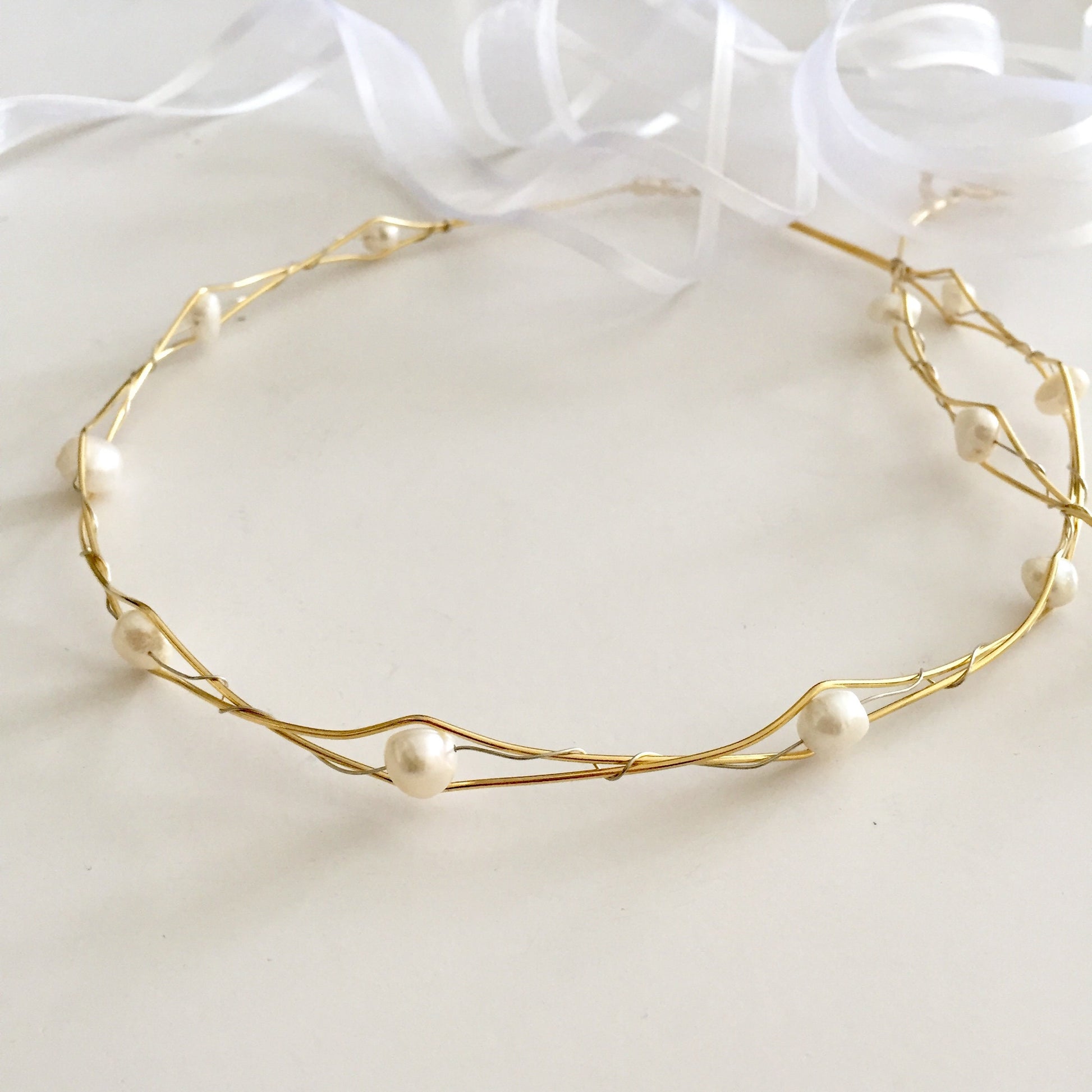 Wedding Crowns, fresh water pearls, raw bronze wires, set of two, bridal circlets, made to order, stefana,summer wedding
